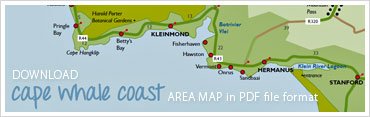 Kogelberg Biosphere Reserve Core; Harold Porter Botanical Gardens; Stony Point Penguin Colony; Silversands Beach; Harbour Road, Kleinmond; Gustav Adolf Memorial Site; "Die Preekboom"; Khoi-San fish traps; Biosphere Eco-Centre, Rooiels; Singletons Kafee; VLV Tapisterie in Kleinmond Library
