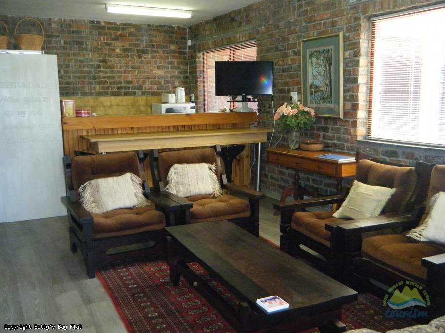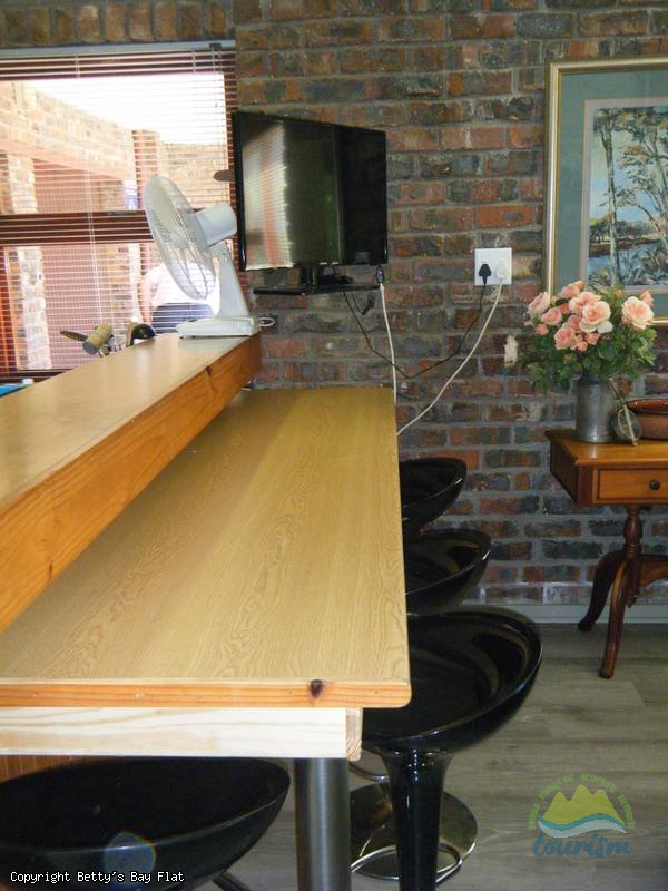 Bedroom with queen size bed and en-suite bathroom with toilet, basin and bath with hand shower, fully equipped open plan kitchen with electric kettle, toaster, crockery, cutlery, microwave/convection, fridge-freezer, 3-plate stove and breakfast nook with bar chairs, sitting room with flatscreen TV and DSTV with all channels and outside braai under covered stoep.