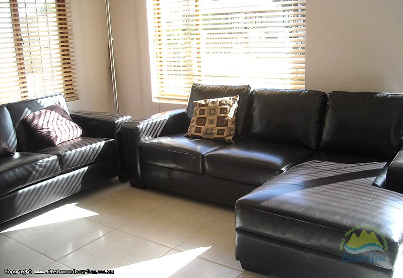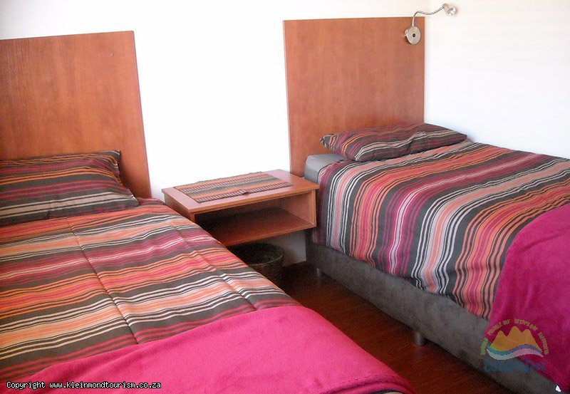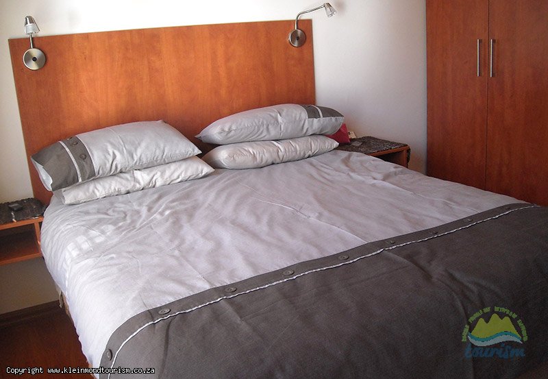 3 bedrooms (7 beds in total): main with queen bed and en-suite bathroom with shower and the other 2 bedrooms with 2 single beds and 4 cabin beds respectively, sharing a large bathroom with shower and a bath. Fully equipped open-plan kitchen / dining room with mountain views. Neat kitchen with microwave, oven, hob, toaster, kettle, fridge, freezer, cutlery and crockery for at least 8 people with a dishwasher, washing machine and dryer in the scullery attached to the kitchen. Covered outside braai area and 1 x lock-up garage.