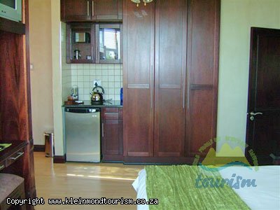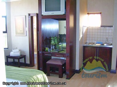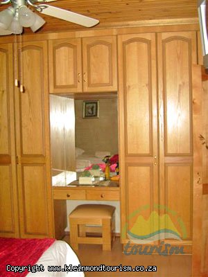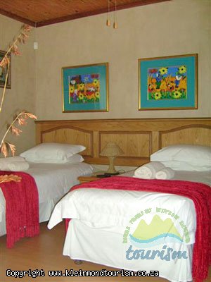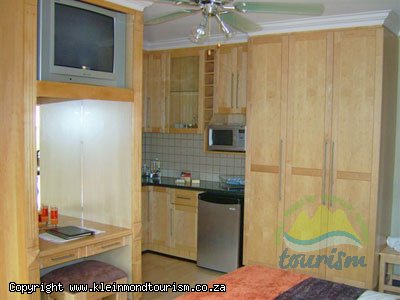 Every room has a ceiling fan, tea and coffee facilities, ample cupboard space and a television with DSTV. Rooms one and two have individual self catering facilities with hot plates, sink, mini fridge and microwave and are alongside one another on the ground floor close to the entertainment area and bar. Each has a double bed and ensuite bathroom. Both rooms also have their own private entrances. Rooms three and four are also on the ground floor with single beds and DSTV in each. The rooms share the ground level bathroom and are particularly well positioned near the kitchen and braai area, swimming pool, jacuzzi and sauna. Room five is nestled upstairs in the back corner of the house facing the impressive Kogelberg mountains and has a high ceiling and its own ensuite bathroom. There is also an additional lounge area on the upper level next to room five.