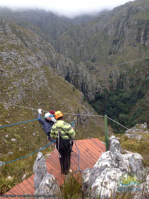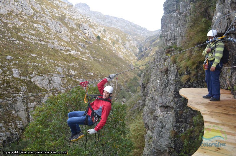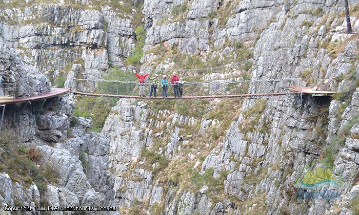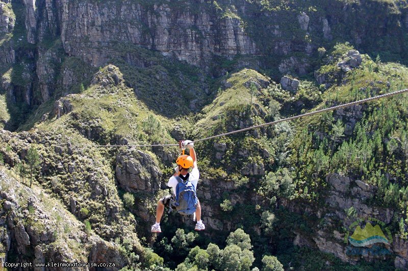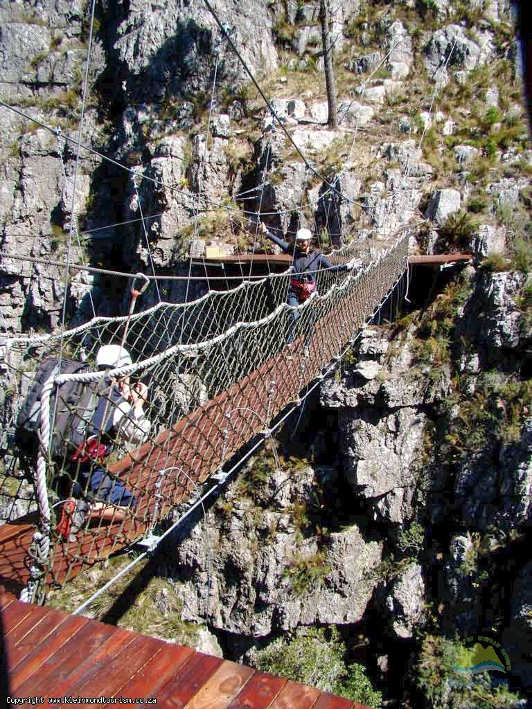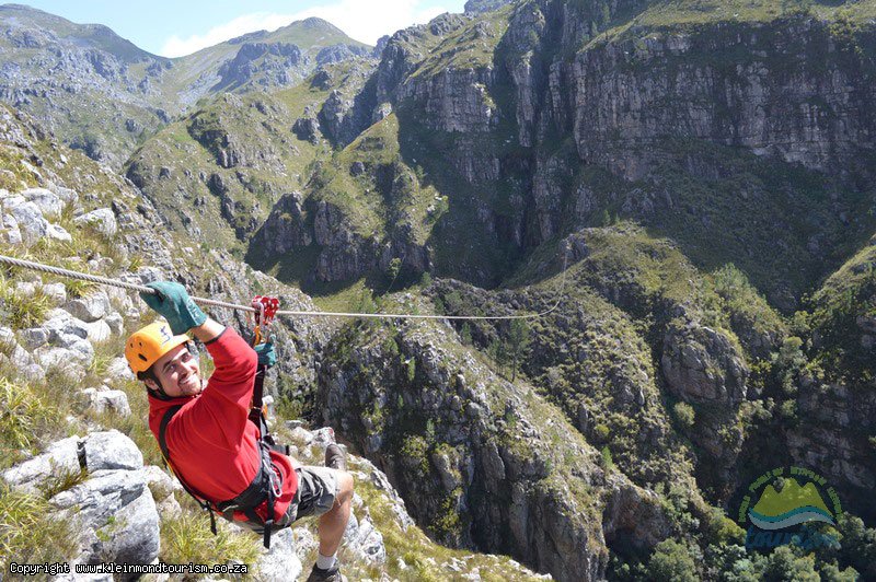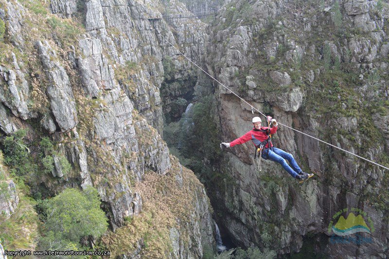 The tour consists of eleven thrilling slides, some over 300m long, each ending on a platform constructed on the cliffs and fynbos covered mountain slopes above the Riviersonderend Gorge. A unique suspension bridge between a narrow sandstone ravine high above a spectacular double waterfall is guaranteed to be one of the unforgettable highlights of the tour.
