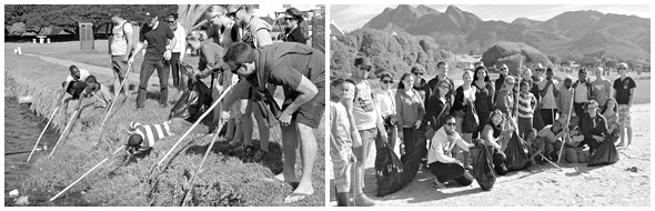 Altogether the 30 participants collected 8 bags of refuse and deposited them in trash cans on the lagoon beach and in the harbour. The students were then treated to a 2.5 hours hike up to Kasteel Kop, the Palmiet river and back again to the harbour before leaving for Cape Town. Their reaction to Kleinmond and its surrounds was "Absolutely stunning" with promises that they will be back shortly as many of them are in South Africa for quite a few months still. The clean up and mountain hike was organized by Klem 'n Kleinmond and the Tourism Bureau, with black bag donations from "die ontwerp-ateljee".